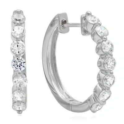 Pre-owned 0.5ct Round Cut Latch-back 7-stone Hoop Everyday Earrings Solid 14k White Gold In D