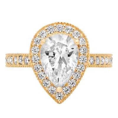 Pre-owned 2.21ct Pear Simulated Diamond Engagement Halo Solitaire Ring 14k Yellow Gold In White/colorless