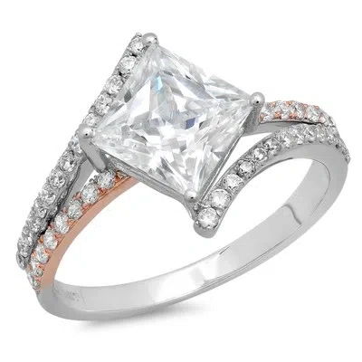 Pre-owned 2.45 Princess Split Shank Moissanite Promise Bridal Wedding Ring 14k 2 Tone Gold In White/colorless