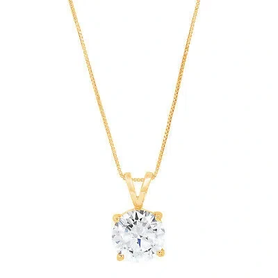 Pre-owned 1.9ct Round Cut Simulated Solitaire 14k Yellow Gold Pendant Necklace + 16" Chain In D
