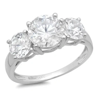 Pre-owned 3.7ct Round Simulated Diamond 3 Stone Engagement Anniversary Ring 14k White Gold In White/colorless