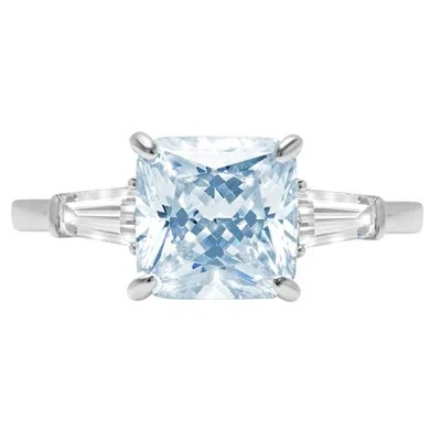 Pre-owned 3.5ct Cushion 3 Stone Sky Blue Topaz Promise Bridal Wedding Ring 14k White Gold In D