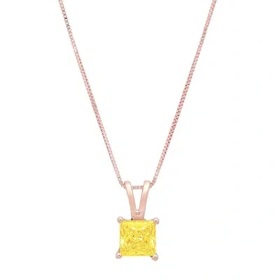 Pre-owned 3ct Princess Cut Vvs1 Yellow Simulated Pendant 18" Chain Solid 14k Rose Gold
