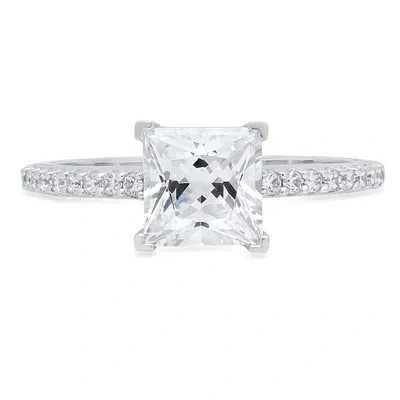 Pre-owned 1.66 Princess Synthetic Moissanite Promise Wedding Designer Ring 14k White Gold In White/colorless