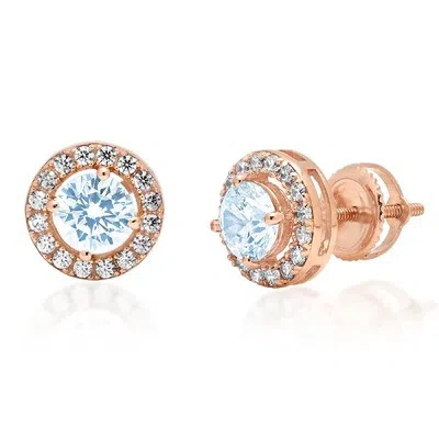 Pre-owned 1.6ct Round Cut Halo Natural Sky Blue Topaz Designer Stud Earrings 14k Rose Gold