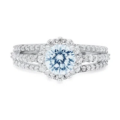 Pre-owned 1.98ct Round Halo Simulated Aquamarine Promise Wedding Ring 14k White Gold In D