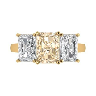 Pre-owned 3.5ct 3stone Asscher Baguette Cut Engagement Bridal Wedding Ring 14k Yellow Gold In D