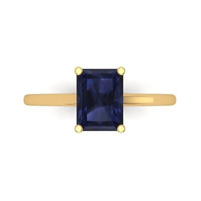 Pre-owned 2 Emerald Designer Statement Bridal Simulated Blue Sapphire Ring 14k Yellow Gold