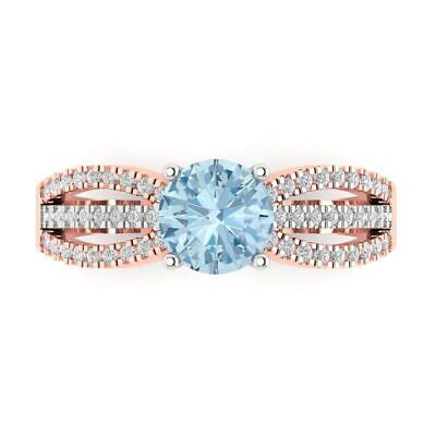 Pre-owned 1.2 Ct Round Natural Aquamarine Classic Bridal Statement Ring 14k 2 Tone Gold In D