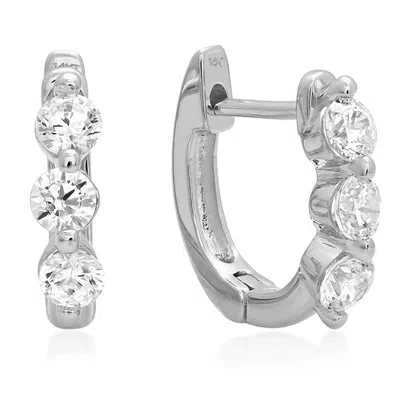 Pre-owned .4ct Round Simulated Diamond 3 Stone Past Present Future Earrings 14k White Gold