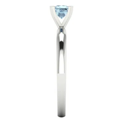 Pre-owned 0.5 Princess Cut Designer Statement Natural Aquamarine Ring Real 14k White Gold