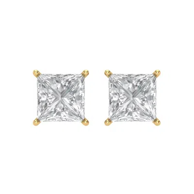 Pre-owned 3ct Princess Cut Solitaire Classic Stud Earrings 14k Yellow Gold Real Moissanite In D