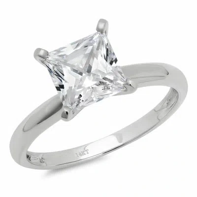 Pre-owned 1.50ct Brilliant Princess Cut Vvs1 Solitaire Engagement Ring Real 14k White Gold In D