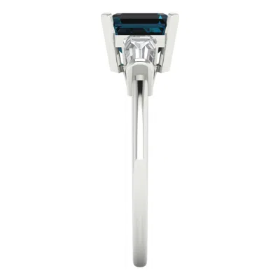 Pre-owned 1.6ct Emerald 3stone Royal Blue Topaz Promise Bridal Wedding Ring 14k White Gold In D