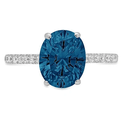 Pre-owned 2.71 Oval London Blue Topaz Promise Bridal Wedding Designer Ring 14k White Gold
