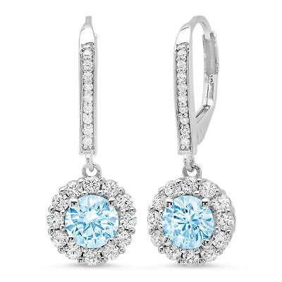 Pre-owned 2.2 Ct Round Cut Halo Blue Simulated Diamond Drop Dangle Earrings 14k White Gold