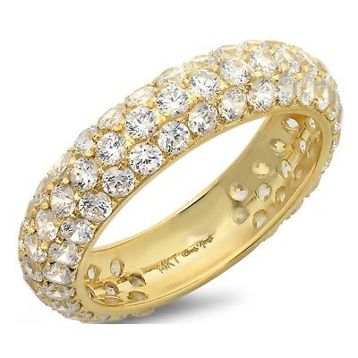 Pre-owned 2.5ct Round Cut Eternity Bridal Wedding Simulated Band Solid 14k Yellow Gold