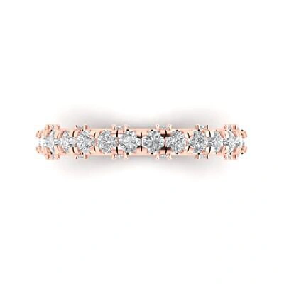 Pre-owned 3.4ct Round Cut Simulated Pave Set Promise Bridal Anniversary Band 14k Rose Gold In White/colorless