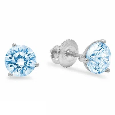 Pre-owned 1.50ct Round Cut Natural Aquamarine Stud Martini Earrings Real 14k White Gold In D