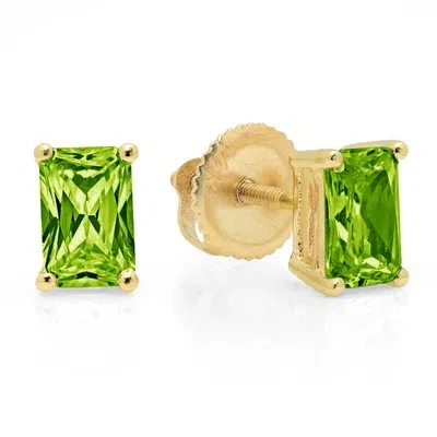 Pre-owned 2 Ct Emerald Cut Solitaire Natural Peridot Stud Earrings Solid 14k Yellow Gold In Green