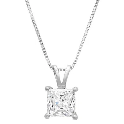 Pre-owned 1.0ct Princess Cut Vvs1 Clear Cz Pendant Necklace 18" Chain Real 14k White Gold In D