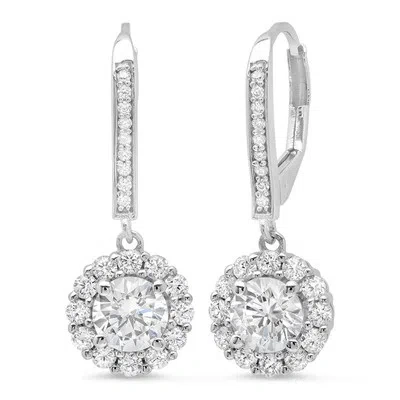 Pre-owned 3.45ct Round Brilliant Cut Halo Lever Back Drop Dangle Earrings 14k White Gold