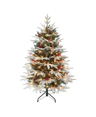 4.5ft Pre-lit Flocked Hartford Fir Tree In Green