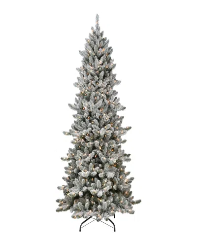 9' Pre-lit Slim Flocked Artificial Utah Fir Tree In Green