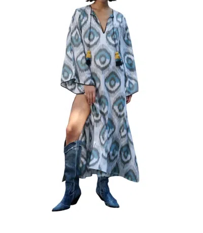 Harem Caftan Dress With Tassels In Blue Evil Eye In Multi