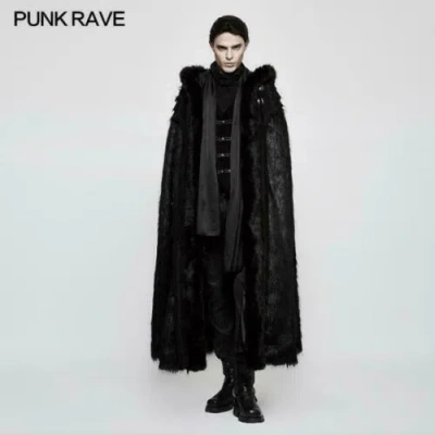 Pre-owned Gothic Long Fur Hooded Sleeveless Thick Cosplay Party Cloak Coat Cape In Black