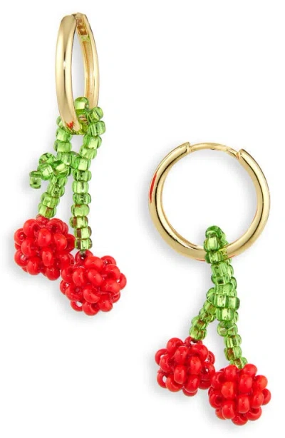 Beaded Charm Drop Hoop Earrings In Gold