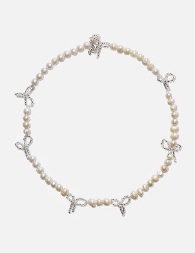 Multi Pearl Bow Necklace In White