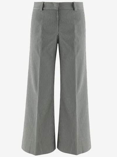 Cotton Blend Pants With Striped Pattern In Green