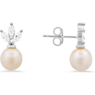 Dangling Freshwater Pearl & Cubic Zirconia Stud Earrings In Silver