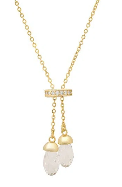 Dangling Freshwater Pearl & Cubic Zirconia Stud Earrings In Gold