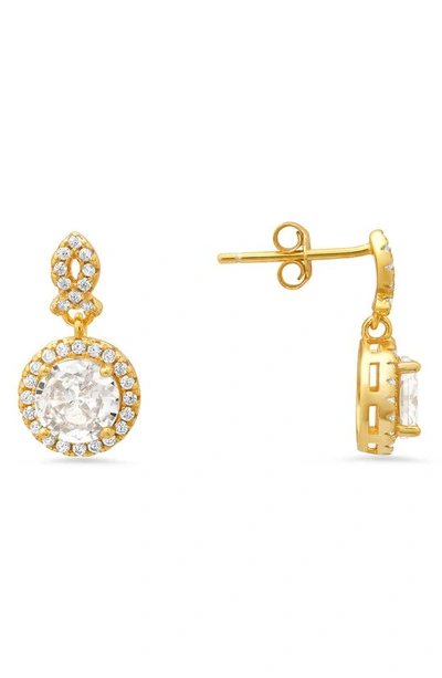 Sterling Silver Cz Pavé Stud Earrings In Gold