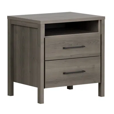 Modern Grey 2 Drawer Nightstand Cubby Storage Shelf