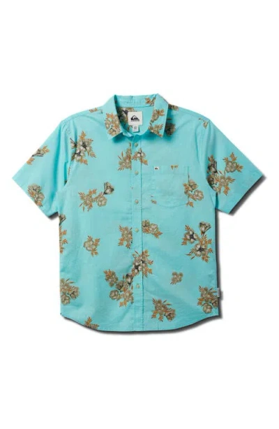 Kailua Floral Classic Short Sleeve Cotton Button-up Shirt In Blue