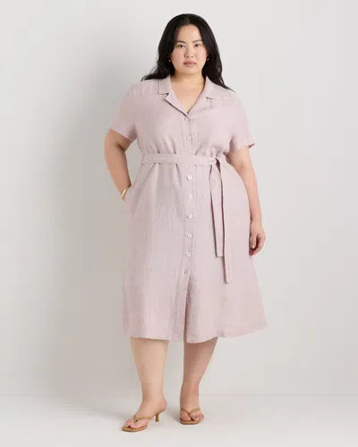 Women's 100% European Linen Button Front Dress In Pink