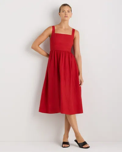 Women's 100% European Linen Fit & Flare Midi Dress In Red