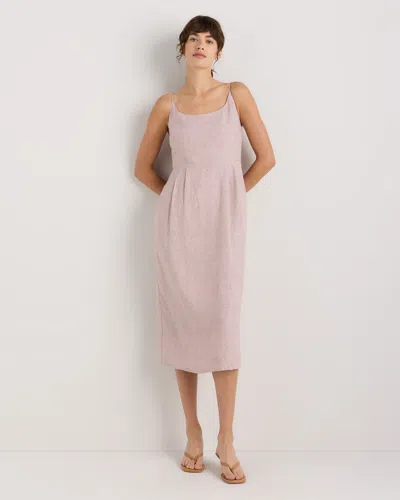 Women's 100% European Linen Scoop Neck Midi Dress In Pink