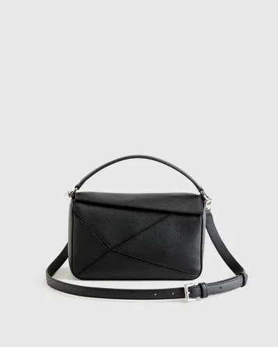 Women's Italian Leather Handwoven Flap Crossbody In Black