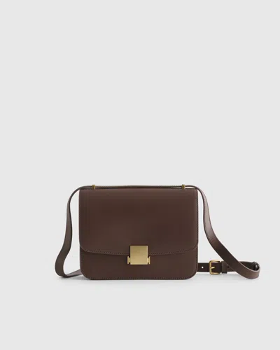 Women's Italian Leather Box Shoulder Bag In Dark Brown