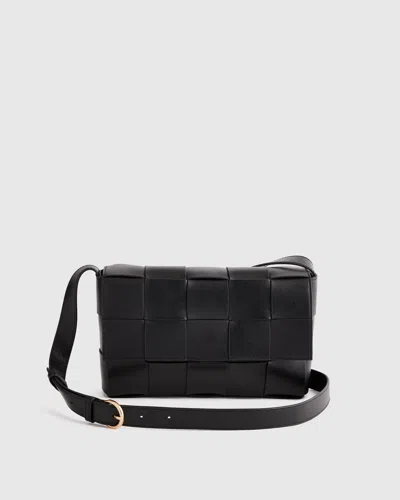 Women's Italian Leather Handwoven Flap Crossbody In Black