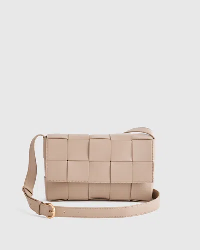 Women's Italian Leather Handwoven Flap Crossbody In Taupe