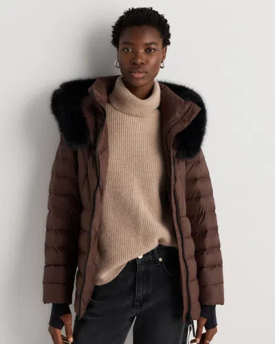 Women's Mongolian Cashmere Shrunken Cable Crewneck Sweater In Brown