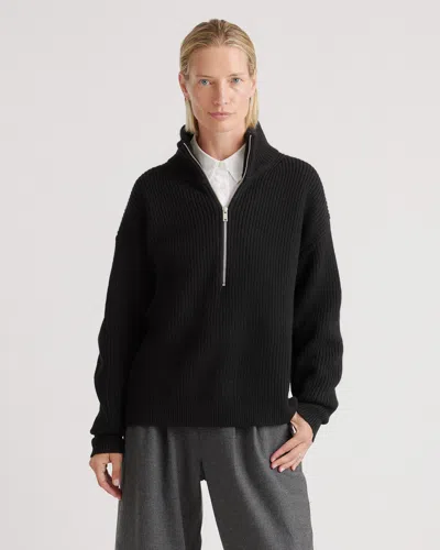 Women's Australian Merino Wool Half Zip Sweater In Black