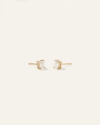 Women's 14k Gold Lab Grown Diamond Emerald Solitaire Studs In Yellow Gold
