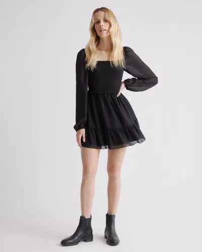 Women's Chiffon Smocked Mini Dress In Black