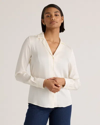 Women's 100% Washable Silk Stretch Notch Collar Blouse In Ivory